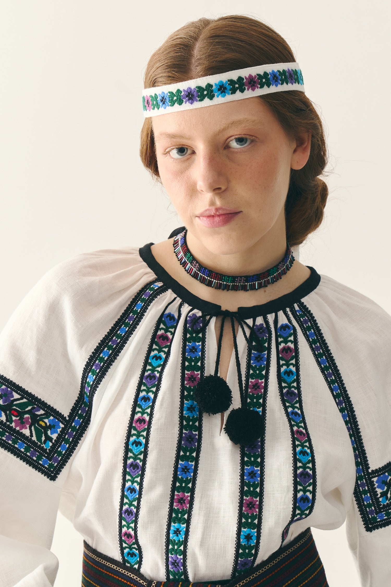 Кохта з оксамитом "Кодимська" / Сірий / 10% вовна, 24% віскоза, 64% ПЕ / M-L - Сіра спідниця з вишитим поясом "Вінницька" / Сірий / XS / 10% вовна, 24% віскоза, 64% ПЕ - Традиційна коротка сорочка "Кодимська" / Молочний / 30% льон, 70% віскоза / XS-S - На